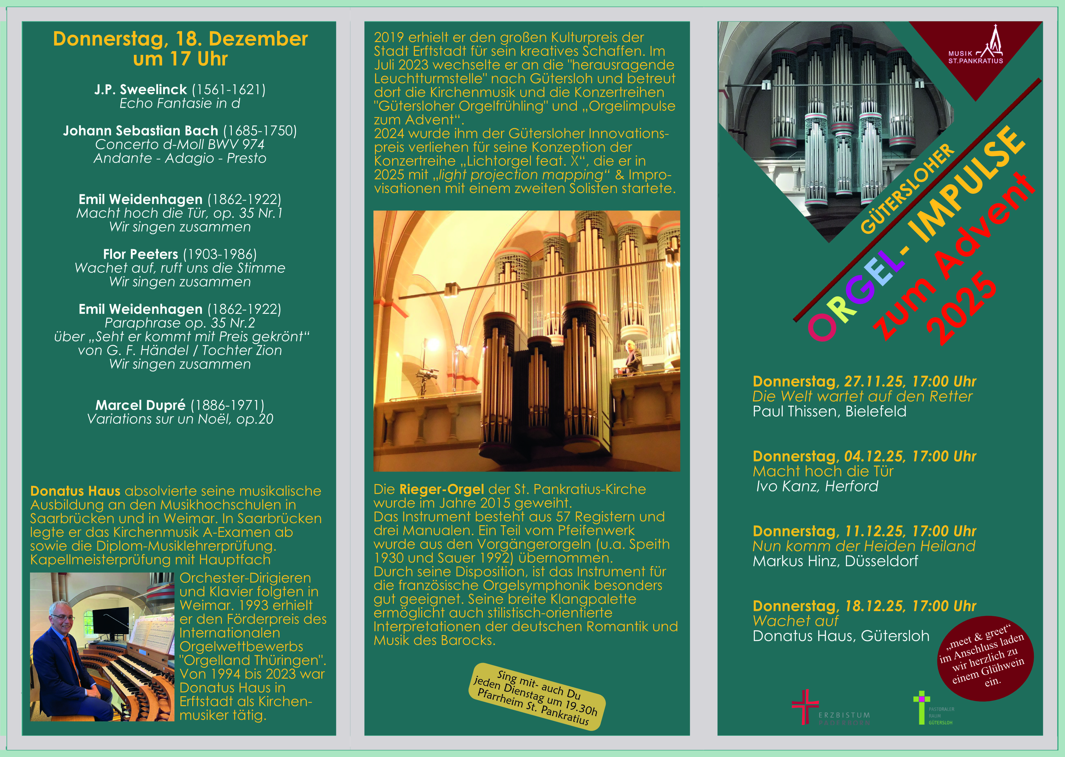 und seit letztem Jahr die „Orgelimpulse zum Advent“ sowie die vierteljährlichen Mitsingkonzerte.